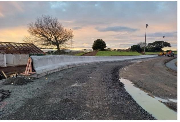 · Construction of the new slipform track wall is well underway with contractors working under lights to complete this element. The wall is 1.2m high with a deflection foot on the bottom and the top edge is rounded